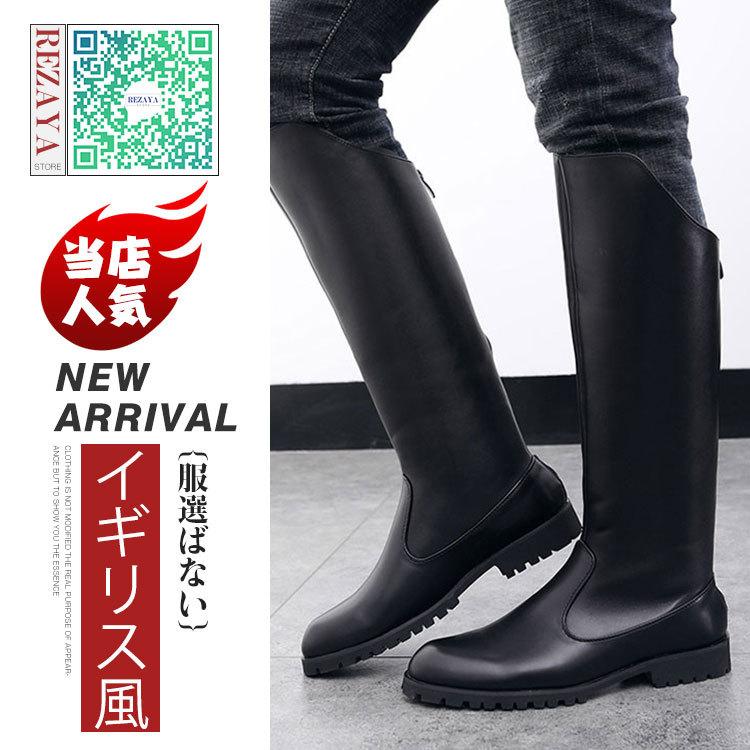 超目玉 ロングブーツ メンズ サイドファスナー付き 長靴 ブラックシューズ 紳士靴 無地ブーツ 乗馬ブーツ 春秋ブーツ インソール 秋 国際ブランド Bajawinescabo Com